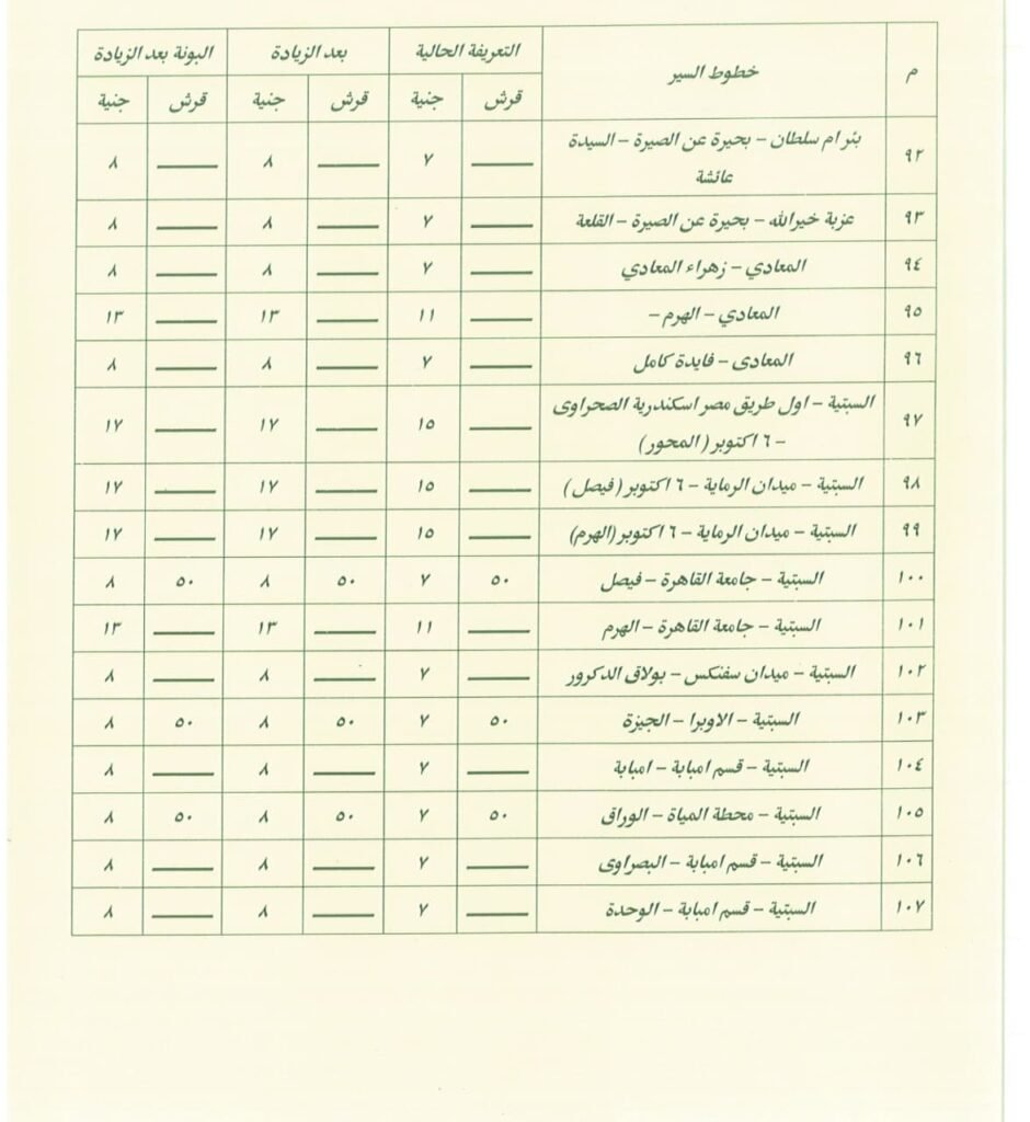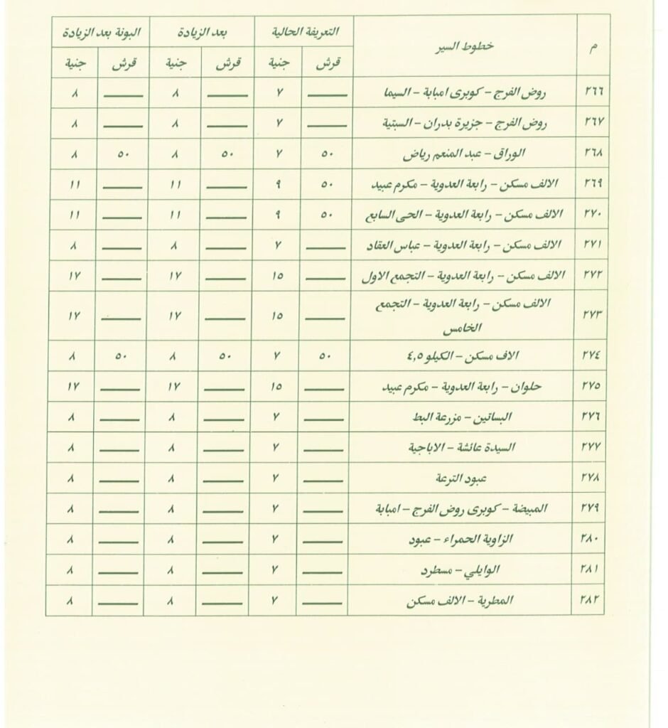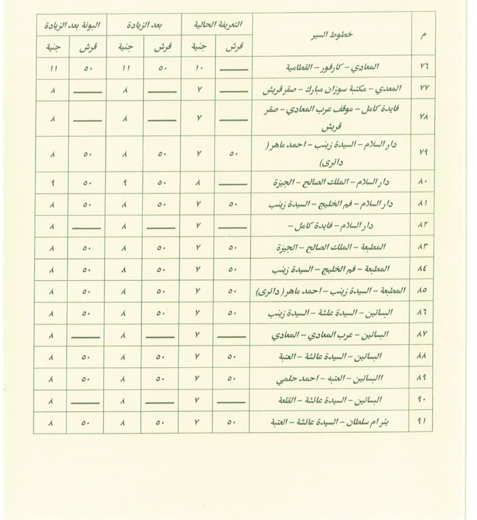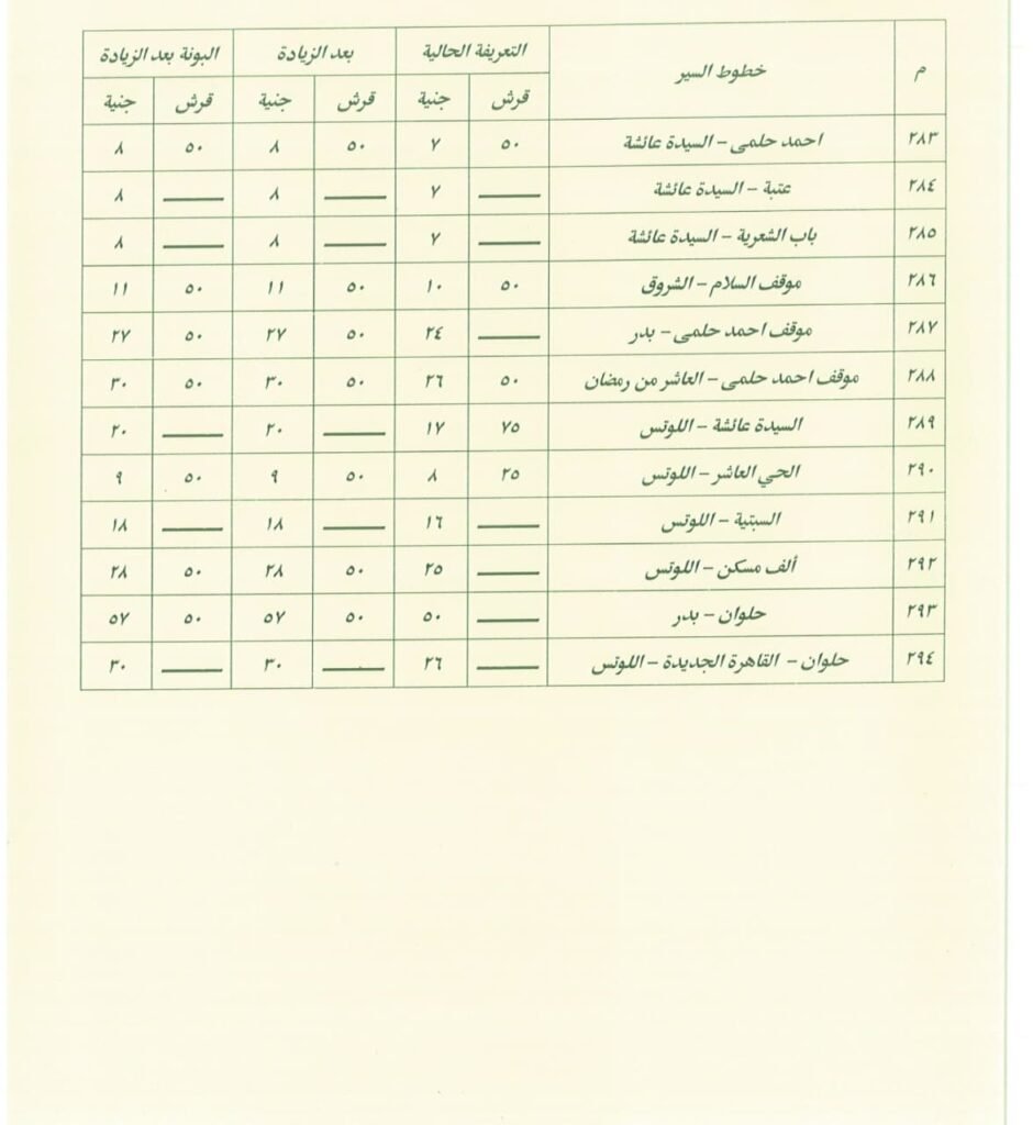 من جانب آخر، تقوم كل محافظة بإعلان التعريفة الرسمية الجديدة فور صدور قرار بزيادة أسعار الوقود، وغالبًا ما يتم تعليق لوحات داخل المواقف العامة توضح قيمة الأجرة الجديدة لكل خط سير، وذلك لضمان وضوح الأسعار ومنع استغلال الركاب، كما تقوم الأجهزة التنفيذية بحملات رقابية على المواقف والطرق لمتابعة التزام السائقين بالتعريفة المحددة، وتهدف هذه الحملات إلى منع المبالغة في رفع الأجرة وضمان عدم تحميل الركاب أعباء إضافية غير مبررة، ومع ذلك، يظل التطبيق الفعلي للتعريفة الجديدة تحديًا في بعض الأحيان، خاصة في المناطق التي تشهد ازدحامًا كبيرًا أو نقصًا في وسائل النقل، ففي مثل هذه الحالات قد يضطر الركاب إلى دفع مبالغ أعلى لضمان الحصول على وسيلة مواصلات سريعة، وفي ظل هذه التغيرات، يحاول بعض المواطنين البحث عن بدائل أقل تكلفة، مثل استخدام وسائل النقل الجماعي أو تقليل عدد الرحلات اليومية قدر الإمكان.