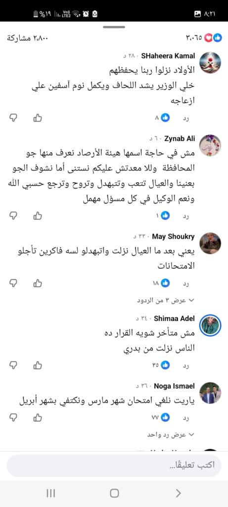 تعليقات غاضبة بسبب تأخر قرار تأجيل الامتحانات اليوم