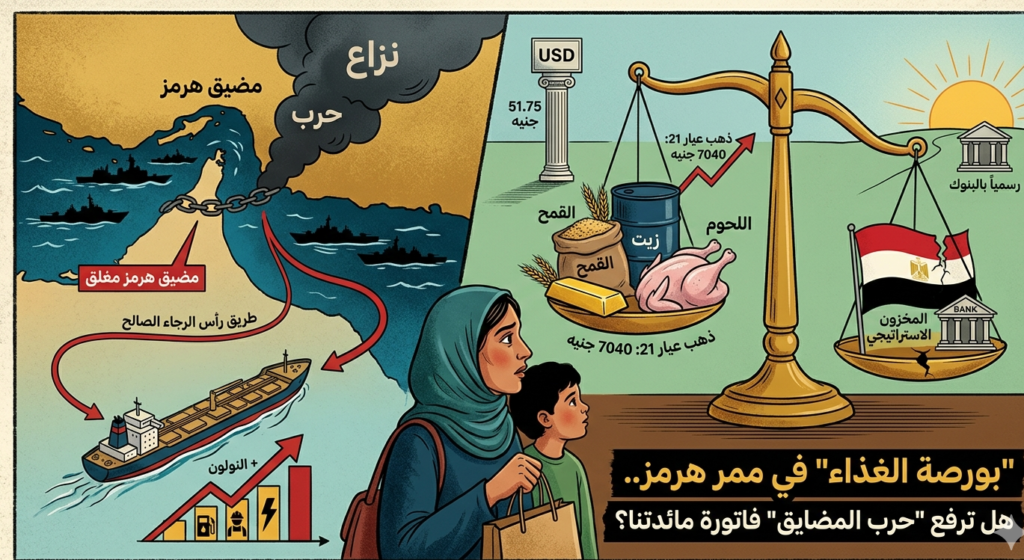 بينما ينشغل العالم بتحركات السفن الحربية والناقلات في مضيق هرمز، تنشغل الأم المصرية بحسابات أخرى تمامًا؛ هل ستتأثر زجاجة الزيت وكيس الأرز وكيلو اللحوم بتلك الأخبار البعيدة؟ فالمسافة بين مضيق هرمز ومائدة المصريين لم تعد تُقاس بالكيلومترات، بل بتكلفة شحن “النولون” وأقساط تأمين الحاويات التي تشتعل مع كل نذير حرب.
